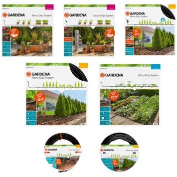 Wil je jouw aangelegde moestuin of bloemenperk van maximaal 40m² in een handomdraai automatisch bewateren? Ga dan voor de Gardena Micro-Drip-Systeem Start Set voor bloembedden en moestuinen. Dit drukreducerende apparaat sluit je via de slang aan je waterkraan, zodat de planten via het leidingsysteem en de bijbehorende sproeiers licht worden besproeid. De sproeiers kunnen ieder in hoek en hoogte worden aangepast, zodat geen enkel tuindeel onbesproeid blijft. Dankzij Gardena’s gepatenteerde Quick & Easy-verbindingstechniek, verbind je deze setonderdelen eenvoudig en snel met elkaar. Met de los verkrijgbare besproeiingcomputer regelt dit Micro-Drip-Systeem de sproeibeurten zelfs ’s nachts of wanneer je op vakantie bent. Kortom: een ideaal systeem voor de optimale verzorging van jouw moestuin of bloembed.